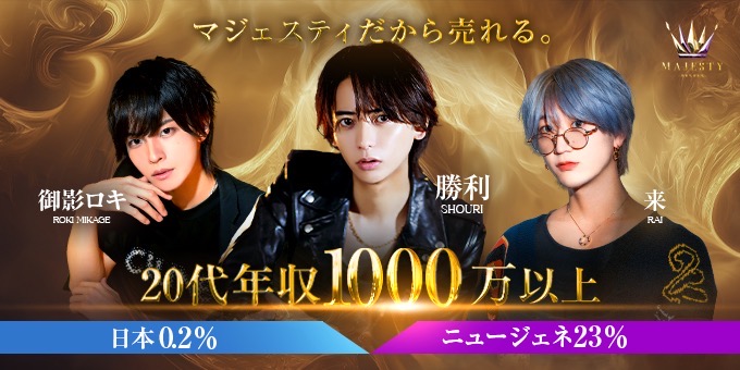 業界初!?未経験10割のお店!業界最先端「NEW GENERATION GROUP」あなたの可能性を輝かせます!誰がやっても売れる育成ノウハウがあります!必要なのは、あなたの稼ぎたいという気持ちだけです!有名ホストになるまで徹底サポートします!