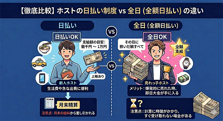 ホストの日払い制度を徹底解説!「全日」の仕組みと注意点