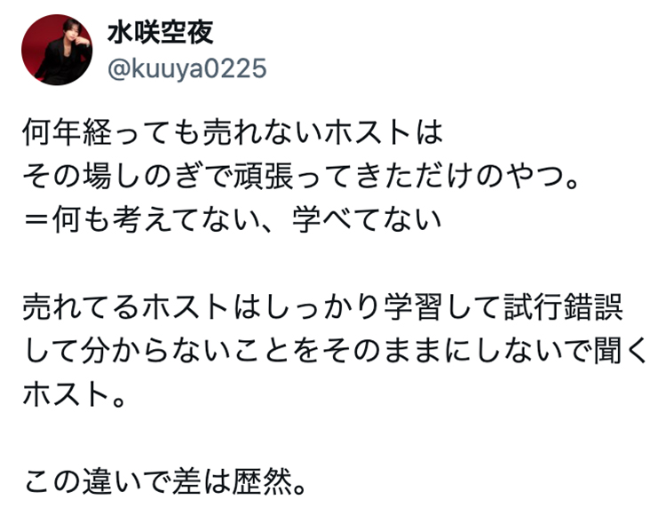 VOCEに在籍する水咲 空夜さんのホストの本質を突いたXの投稿をご紹介!
