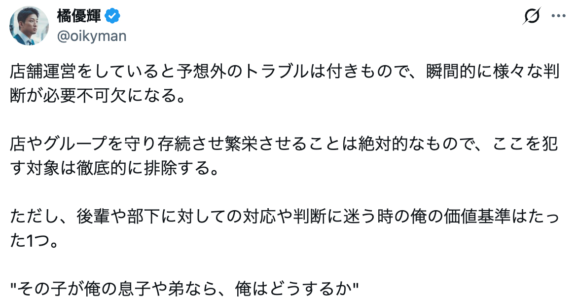 この一貫した基準が、周囲からの絶対的な信頼と、鉄壁な組織運営の基盤となっています。